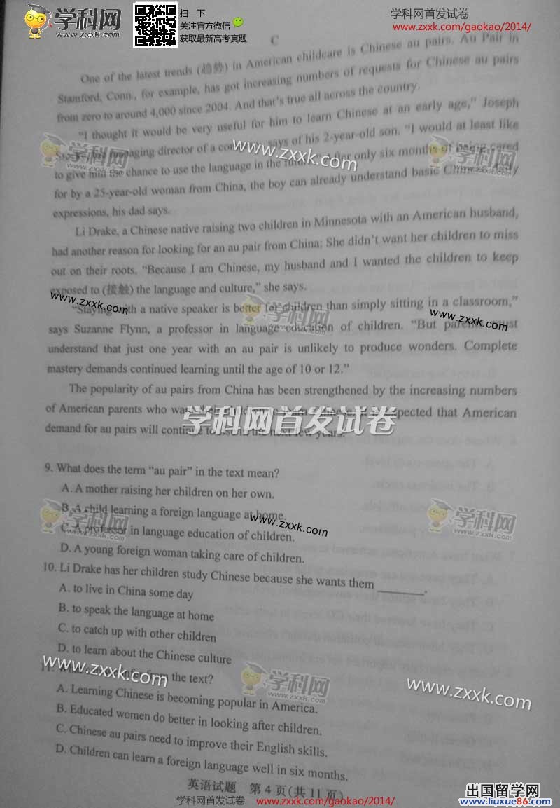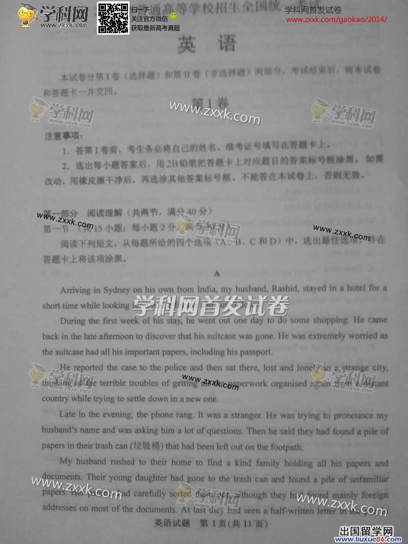 2014年高考的战斗已经打响了,考生们在考场正争分夺秒地努力答题。出国留学网高考频道会及时为广大考生提供2014年甘肃高考英语真题及答案,其它科目的真题和答案将陆续公布,请广大考生及家长随时关注本站更新(ctrl+D收藏即可)。2014甘肃高考真题及答案一发布,此表页的头条将马上显示,如果您查找的真题及答案没有出现,请按crtl+F5进行刷新。