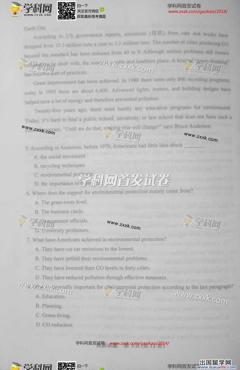 金榜题名是所有考生的短期理想及目标,而高考结束意味着这个目标的奋斗可以暂告一段落,那么,大家对自己的成绩是否做到了心中有数呢?大家想要了解自己的高考情况,提前预知自己的高考分数,可以到出国留学网站来,出国留学网高考频道小编紧密关注2014年甘肃高考语文真题及答案,只要高考真题和答案发布,小编会以最快的速度收录,考生们可以在这里查看到2014年的甘肃高考英语真题和答案,大家可以对照一下自己的答案,希望对您能有所帮助。