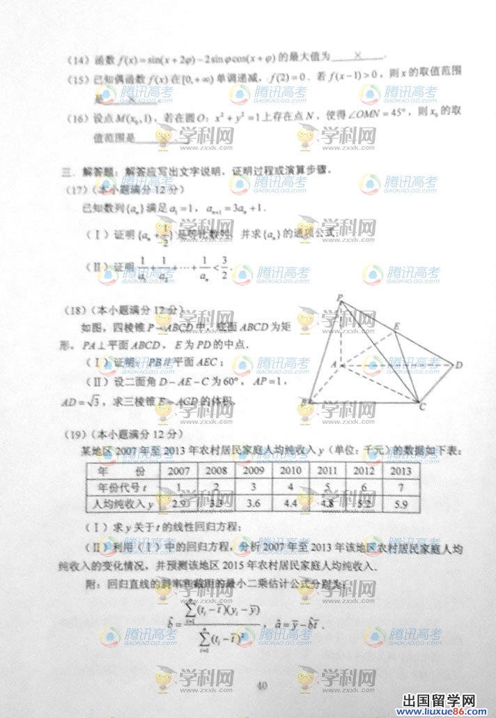 人生的转折点往往就在两三天,高考就是一个典型,小编相信,你翻山越岭走过了千山万水,就是为了到达更美的境界,所以不要怕,勇敢面对吧!出国留学网高考频道第一时间为您提供2014西藏高考理科数学真题及答案解析,你最美的风景就在这里!