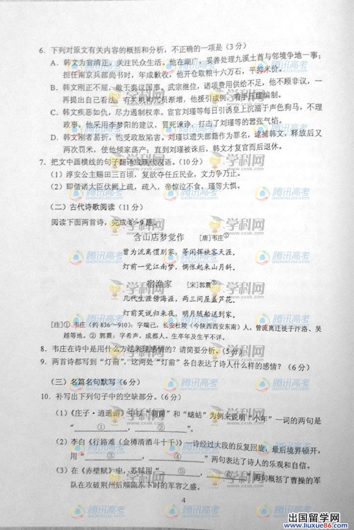 书山有路勤为径,学海无涯苦作舟。让出国留学网做你通向成功的大道和迈向胜利的渡船吧。出国留学网将在今年高考考后为你奉上2014年贵州语文高考真题和详细解答,让你每一分的获得都志得意满,每一滴汗水都闪耀着成功的光芒,在硝烟过后做真正的胜者。