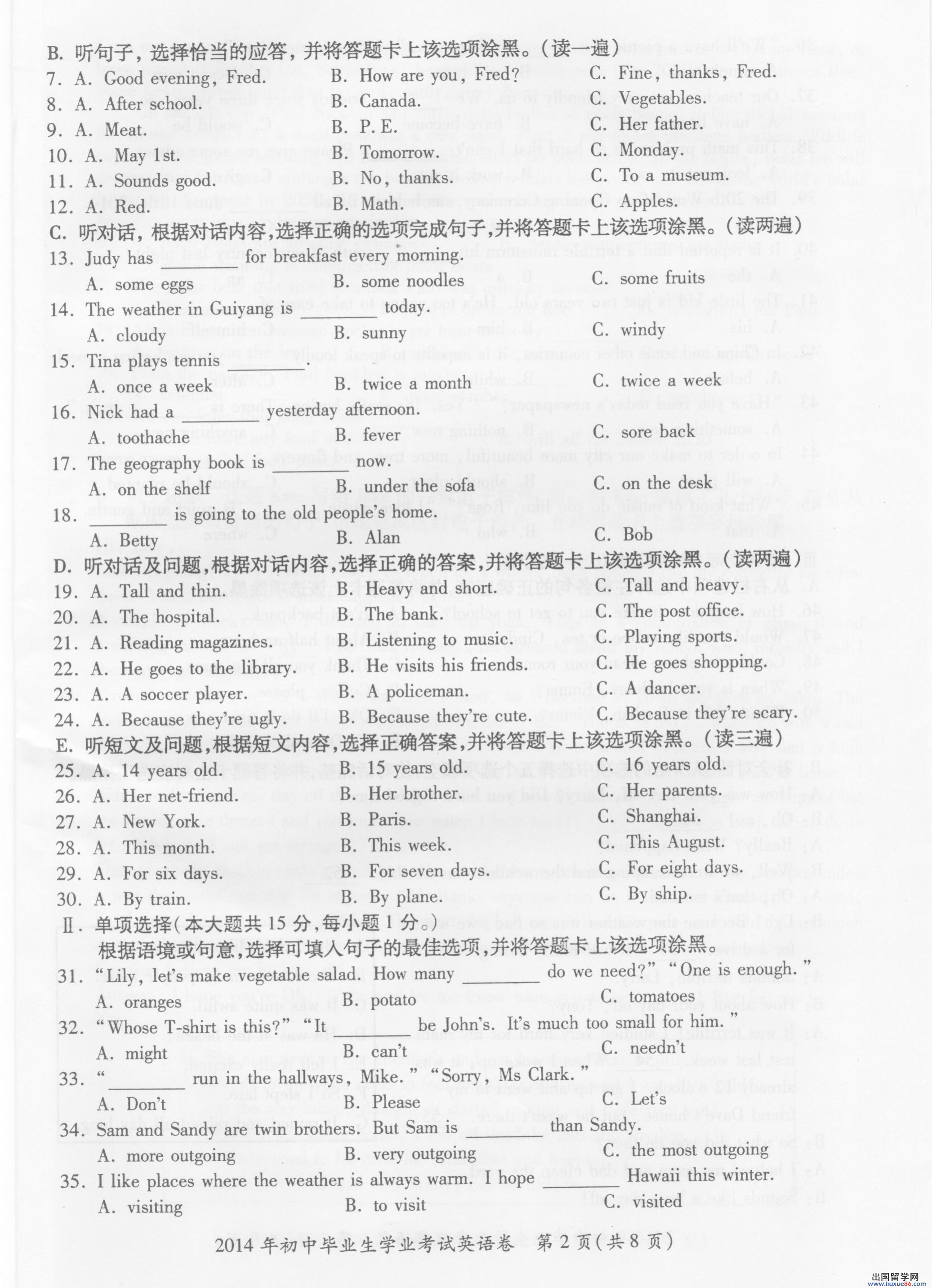 出国留学网中考频道第一时间为您公布2014贵阳中考英语评分说明,希望大家喜欢。