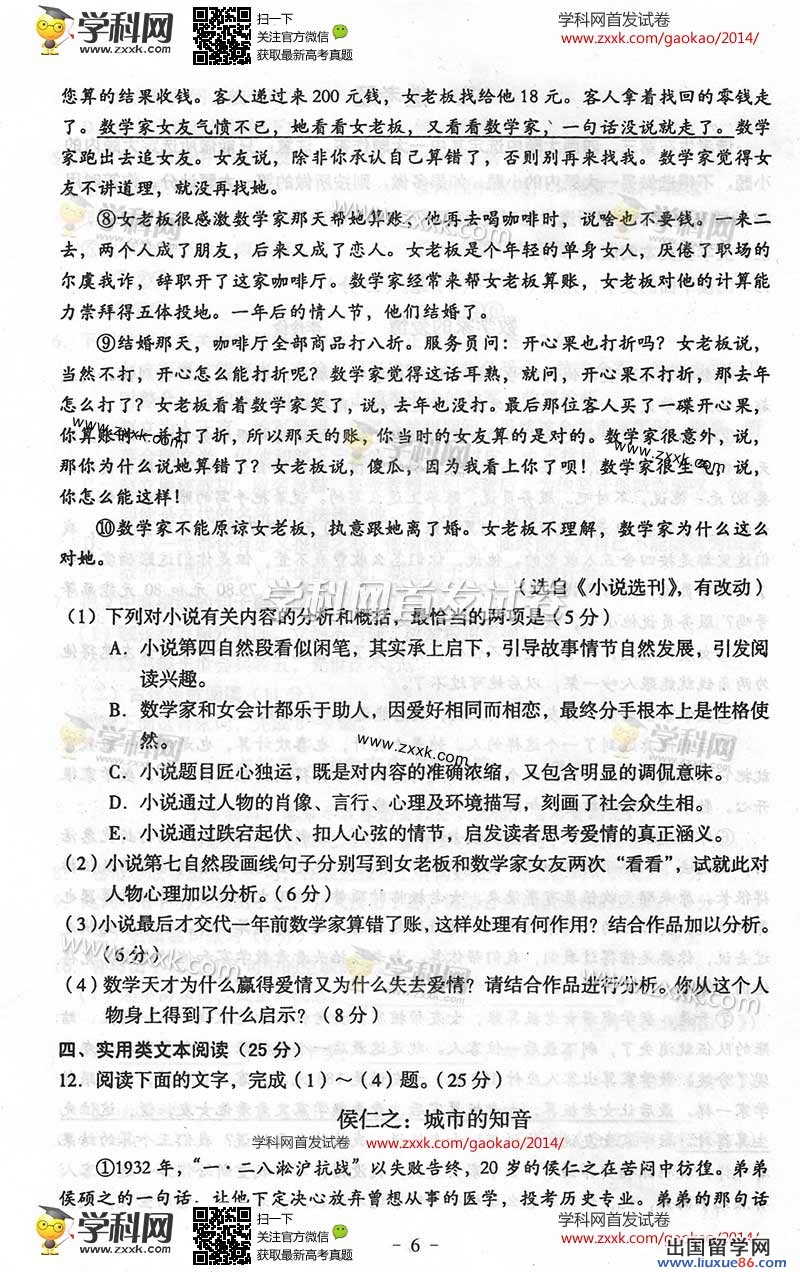 出国留学网高考频道提醒您人生的精彩在于追求,而不必太在意得失,何况有得也必有失!高考已经结束,考生们就好好玩一下吧,不必纠结于自己的发挥,本网站为您首发2014年辽宁高考语文真题及答案,希望对您估分有所帮助。
