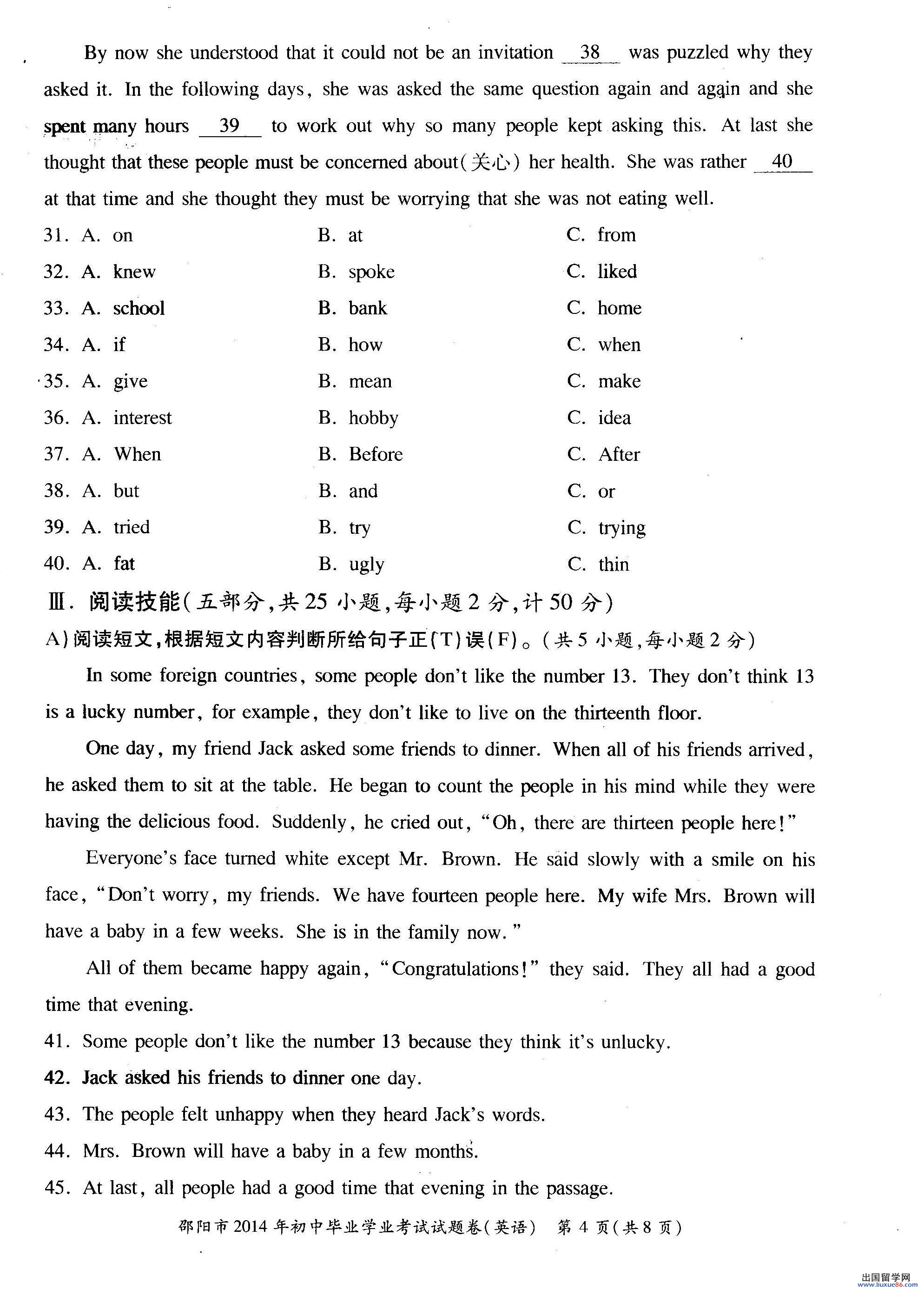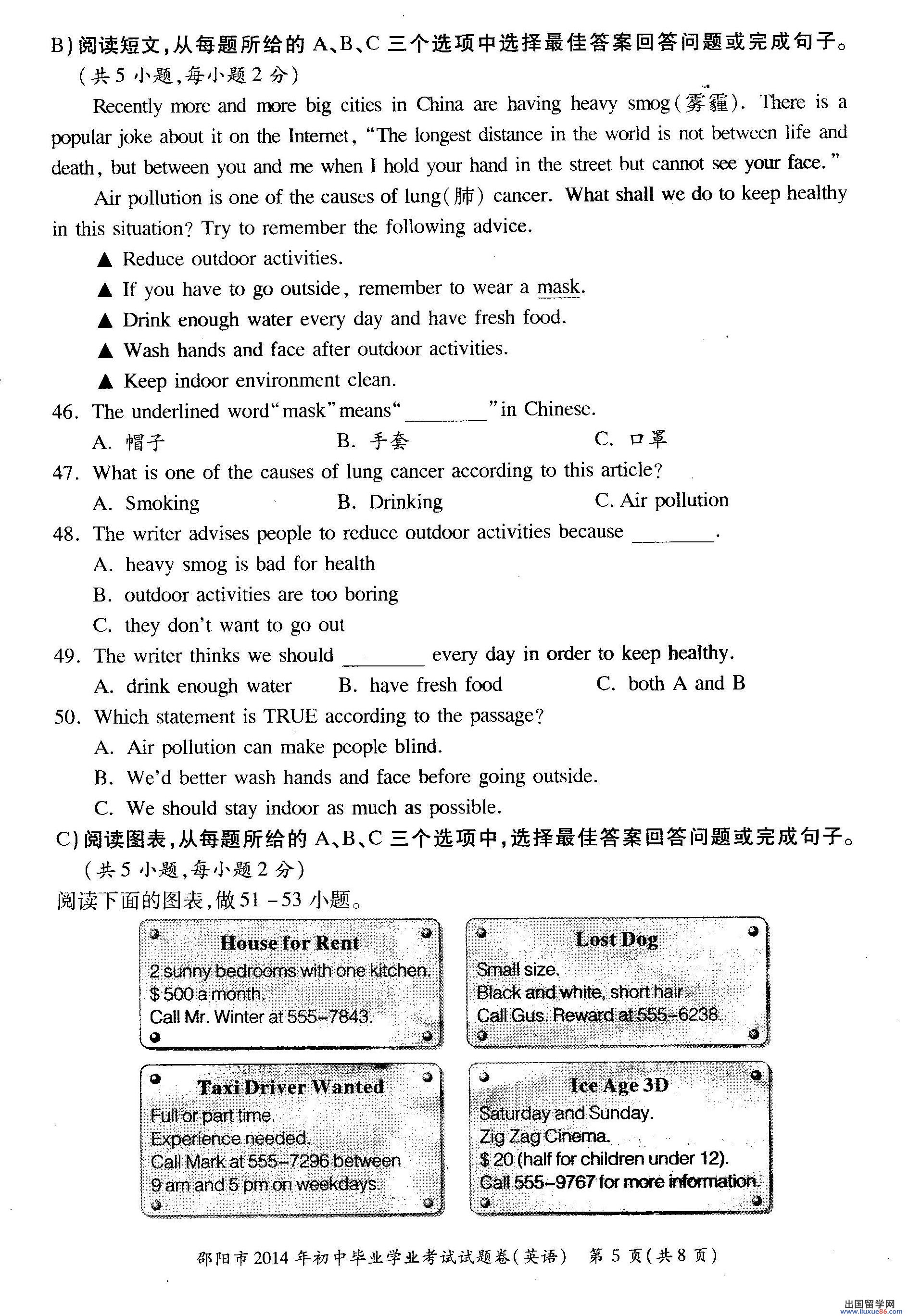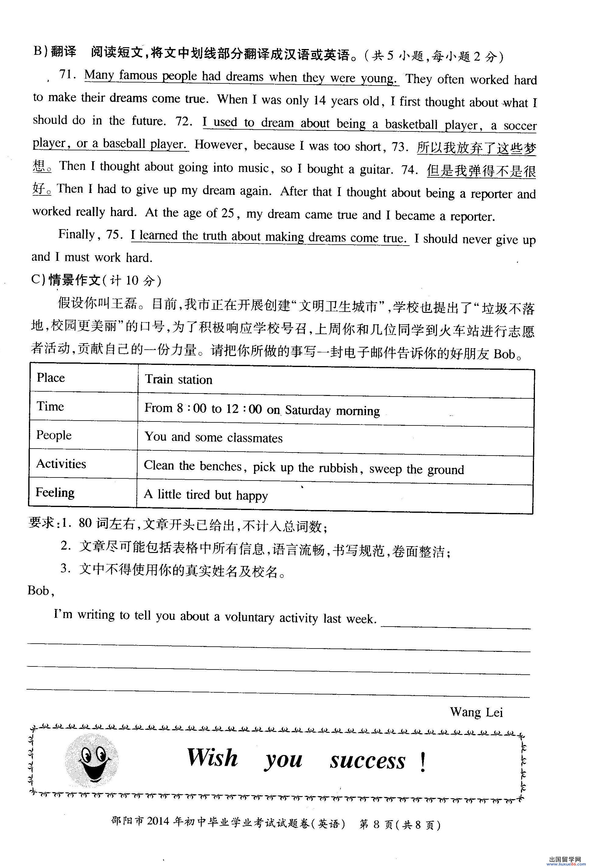 以下2014年邵阳中考英语真题及答案由出国留学网中考频道为您提供,希望对您有所帮助!