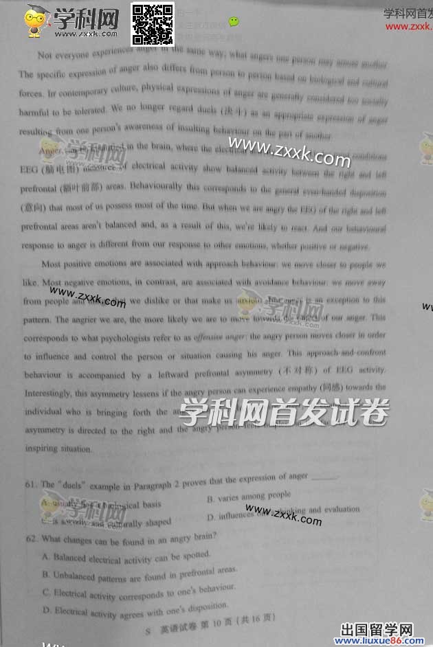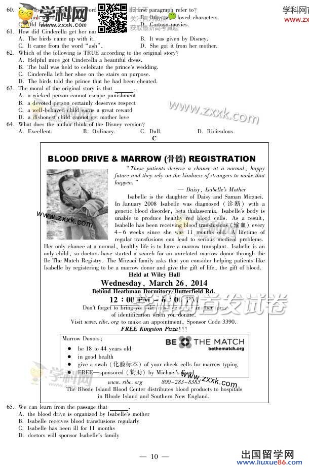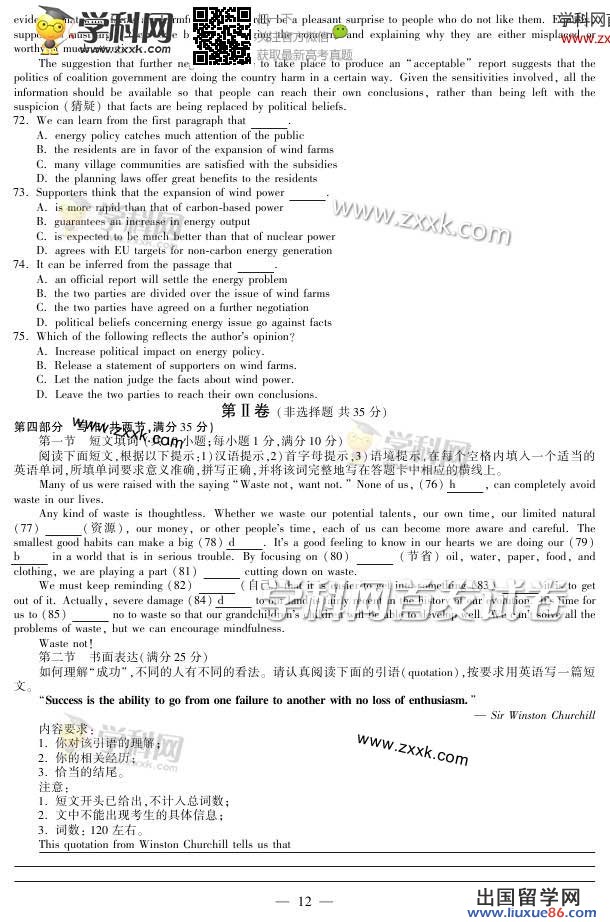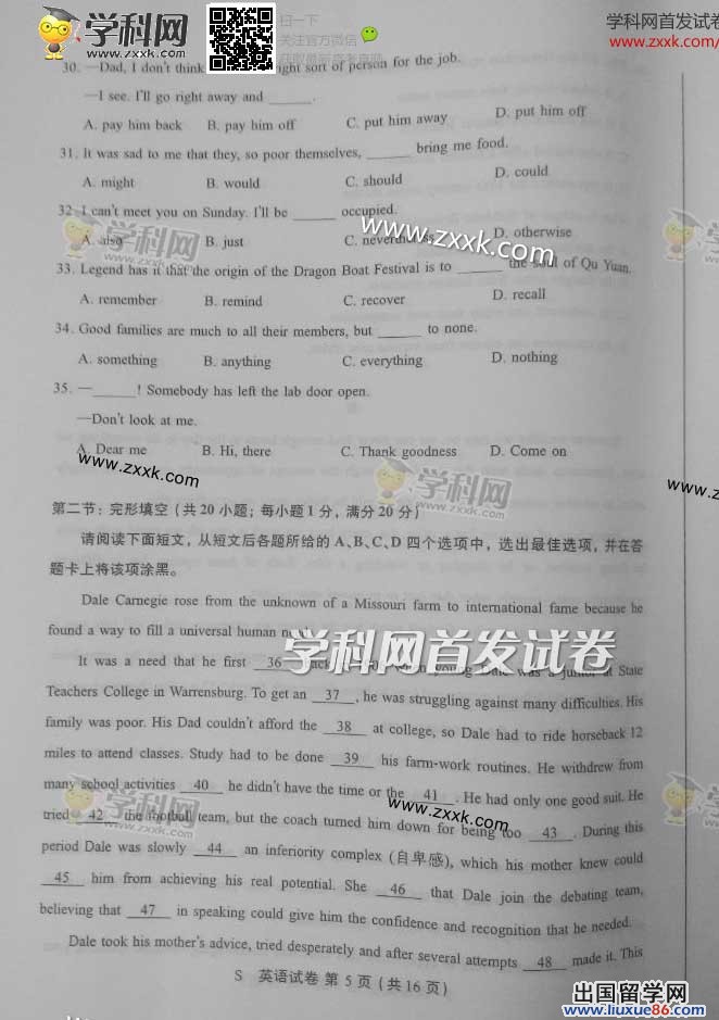 出国留学网为您提供最权威的高考真题及答案信息,经过了连日来的忙碌,现在由出国留学网高考频道为您公布2014山西高考英语真题及答案,供您参考,希望对您有帮助,欢迎您访问出国留学网浏览更多高考真题信息,您还可以按按CTRL+D收藏本站。