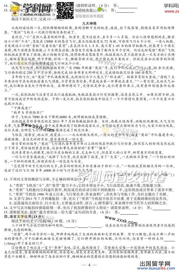 注意啦,注意啦,出国留学网高考频道在考后为大家首发2014河南高考语文真题及答案,小伙伴们赶紧来对对答案吧。在此,小编携出国留学网高考组全体同仁预祝各位考生金榜题名,马到成功。