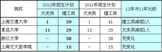 上海交通大学、复旦大学、浙江大学三所高校2012年在京招生计划