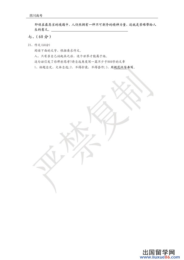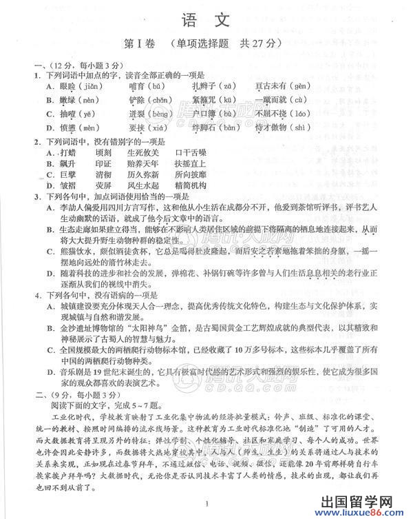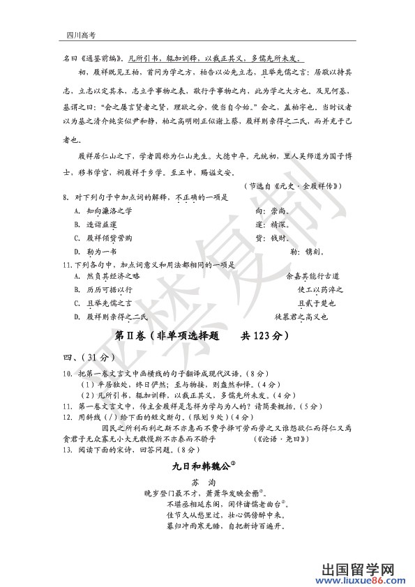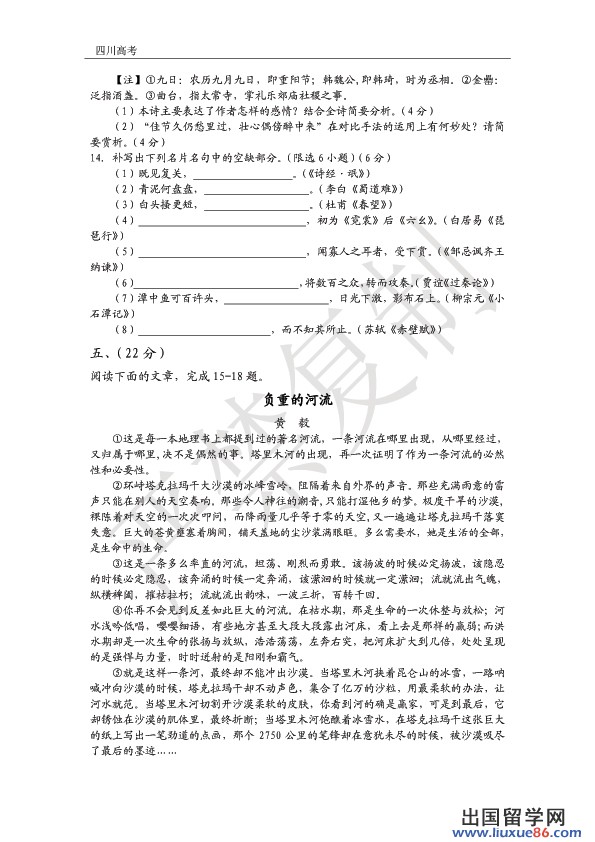 这个六月注定是一个风生水起的六月,因为2014年高考安排在六月,我们致力于把最快最新考生最需要的信息提供给广大高考学子,出国留学网第一时间为您提供2014四川高考语文真题及答案,希望对您有帮助,您需要关于高考的任何信息都可以登录出国留学网高频频道进行查询,预祝您取得好成绩。
