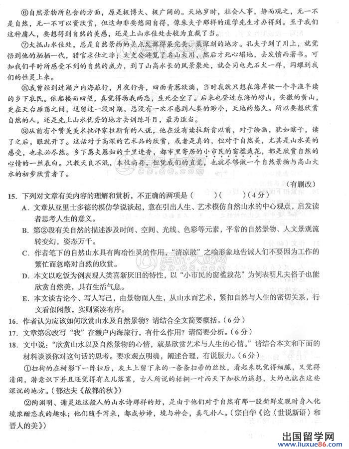 你有你的赤橙黄绿,我有我的青蓝靛紫,天空同属于我们,因为我们年轻。出国留学网高考频道会及时为广大考生提供2014年四川高考语文真题及答案,请密切关注。若您需要的信息没有及时更新,请按ctrl+F5进行刷新。