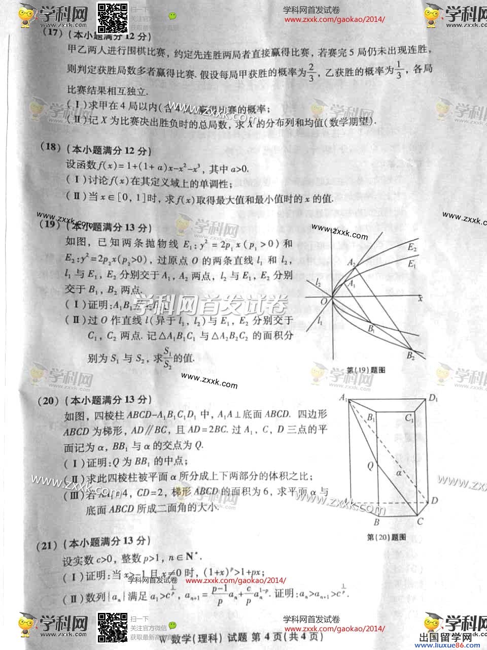十年寒窗苦,只为一刻甜! 那一天看起来是那么近,又似乎那么远,我们在为自己的未来努力着,憧憬着,想想明天的阳光,明天的欢笑,朋友的祝福,长辈的期望,今天的付出是那么值得!出国留学网高考频道第一时间为您提供2014安徽高考理科数学真题及答案解析。