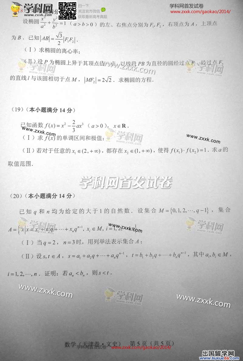 高考网是为考生们提供所有有关高考的网站,包括高考前的考题预测,自然也包括高考真题及答案。本网站会在高考结束后,以最快的速度将2014天津高考数学真题及答案呈现给大家,大家高考结束后,如果想要查看高考真题及答案,可以登陆本网站进行查阅,如果您需要查找的真题及答案没有显示,请按ctrl+F5进行刷新。希望对大家有所帮助。