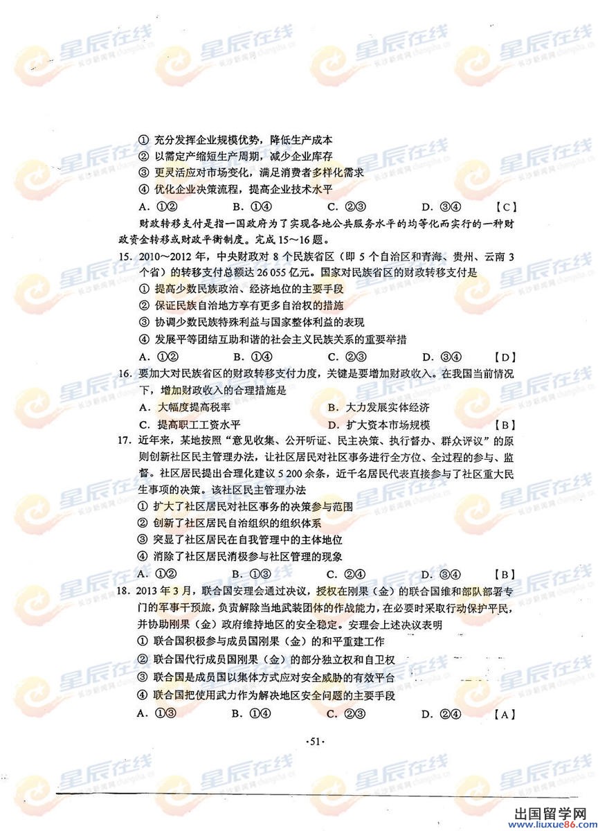 这个六月注定是一个风生水起的六月,因为2014年高考安排在六月,我们致力于把最快最新考生最需要的信息提供给广大高考学子,出国留学网第一时间为您提供2014江西高考文综真题及答案,希望对您有帮助,您需要关于高考的任何信息都可以登录出国留学网高频频道进行查询,预祝您取得好成绩。