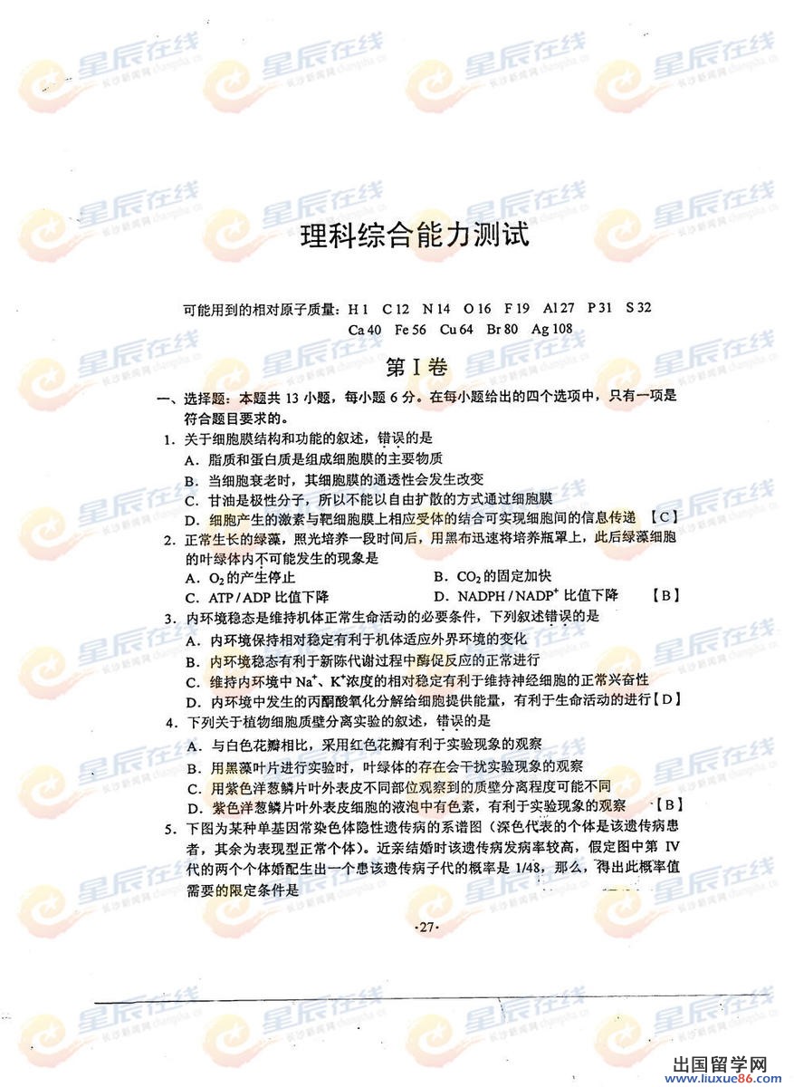 汗水是成功的主色调,你就是高考的主旋律。出国留学网给广大考生发福利:高考考后请登录本站,本站将放出2014年湖北高考理综科目真题及答案,帮助每一位考生做好成绩分析和定位。请家长和考生们关注本站首页的高考资讯,或加入收藏夹,避免错过重要资讯。