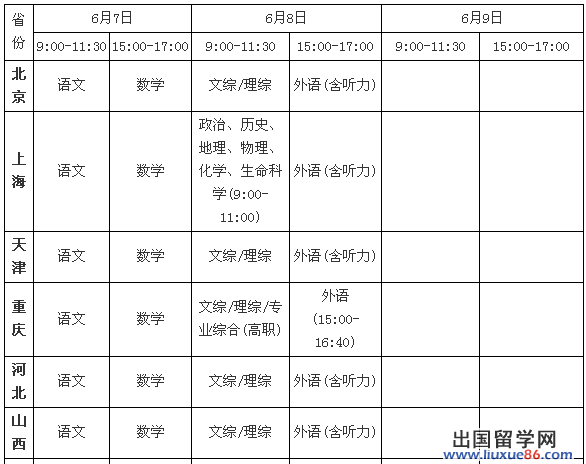 为了方便广大考生了解释考试时间,出国留学网为大家提供《2014年各省高考科目及考试时间大全》,供考生参考。希望大家考试顺利,超水平发挥!