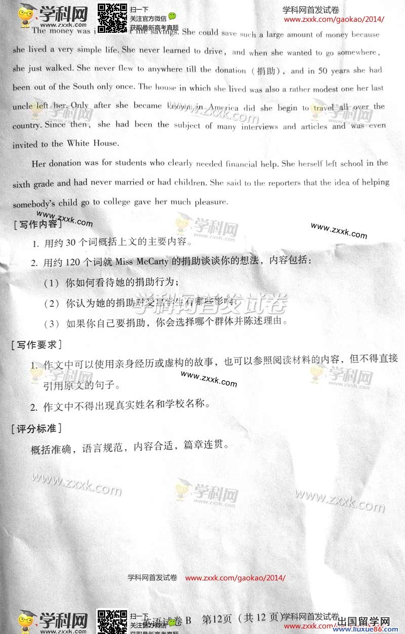 高考着实是一种丰收,它包蕴着太多的内涵。无论高考成绩如何,你的成长与成熟是任何人无法改变的事实,这三年的辛勤走过,你获得的太多太多。出国留学网高考频道会及时为广大考生提供2014年广东高考英语真题及答案,同时接下来的几个科目真题及答案亦会在此频道显示,请考试及家长关注本站更新(ctrl+D收藏即可)。