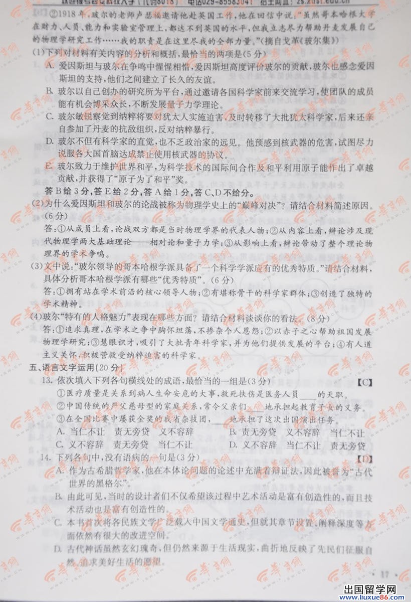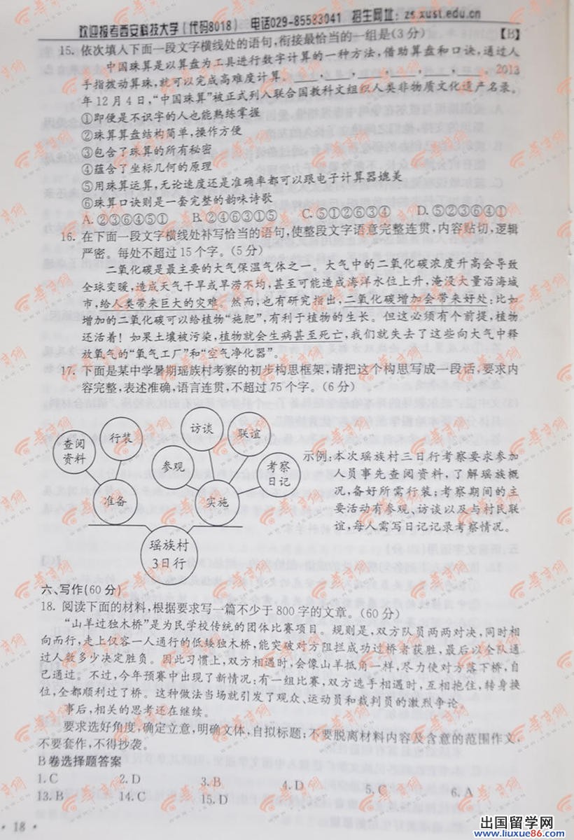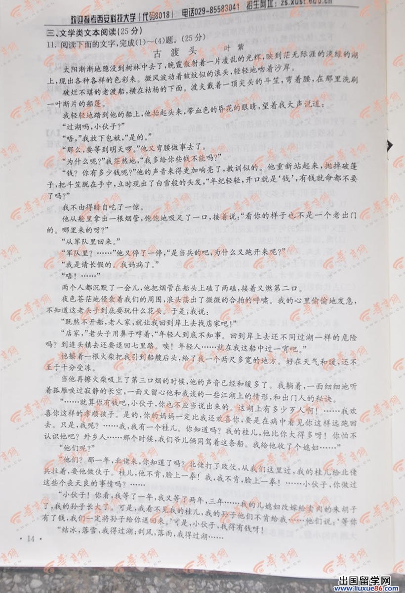 高考是同学们人生需要经历的第一个重大转折,因此不管是再大的困难都要克服,我们的第一目标就是好成绩,出国留学网高考频道小编紧密关注河北高考语文试卷及答案2014年,我们会在考后第一时间为您公布,请您关注出国留学网高考频道,预祝您取得好成绩。