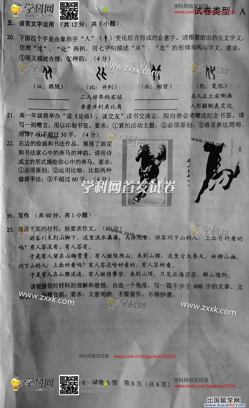 一年一度高考时,明天上战场的各位你们准备好了吗?不要惊慌,不要着急,沉着应对,出国留学网将以最快的速度为大家呈现2014湖北高考语文真题及答案。如果您没有找到真题及答案,请按ctrl+F5进行刷新。