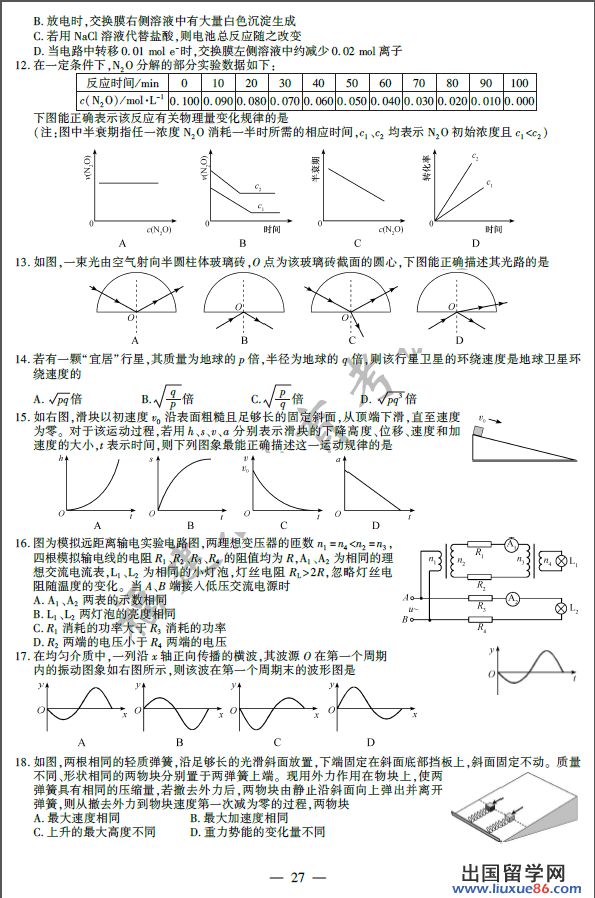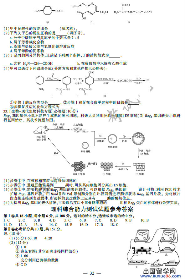 出国留学网高考频道为您提供2014年福建高考理综真题及答案解析,希望对您考后估分有所帮助!