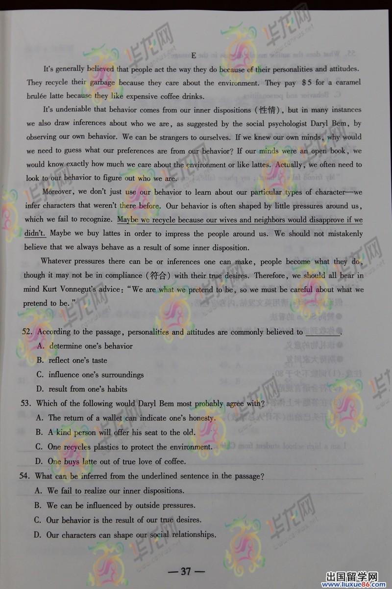 我不去想是否能够成功,既然选择了远方,便只顾风雨兼程;我不去想,身后会不会袭来寒风冷雨,既然目标是地平线,留给世界的只能是背影。这是小编对高考毕业生的大学寄语有没有让大家等待成绩的焦急心情有一点缓解呢,我们出国留学网高考频道的小编紧密关注2014年重庆高考英语真题及答案,一旦公布我们会第一时间更新在页面,请广大同学及时进行刷新,更多2014重庆高考真题以及答案会在考后第一时间公布,敬请收藏本网站(ctrl+D即可)