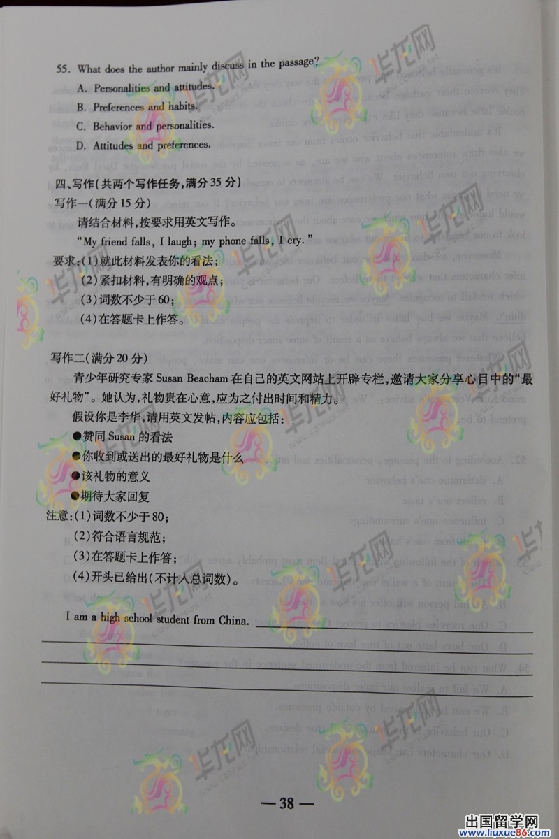 2014年高考虽然已经结束了,但是它已经深深的印在了大家的心里,成为最宝贵的记忆被储存,为了大家能够更好的估分,出国留学网高考频道为您首发2014年重庆高考英语真题及答案,我们还将发布最新其他科目的答案,请大家一定要密切关注本网站。
