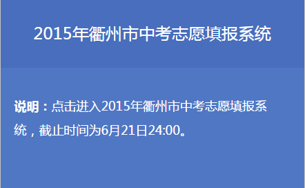 出国留学网中考频道讯,2015年衢州中考志愿填报入口已经开通:
