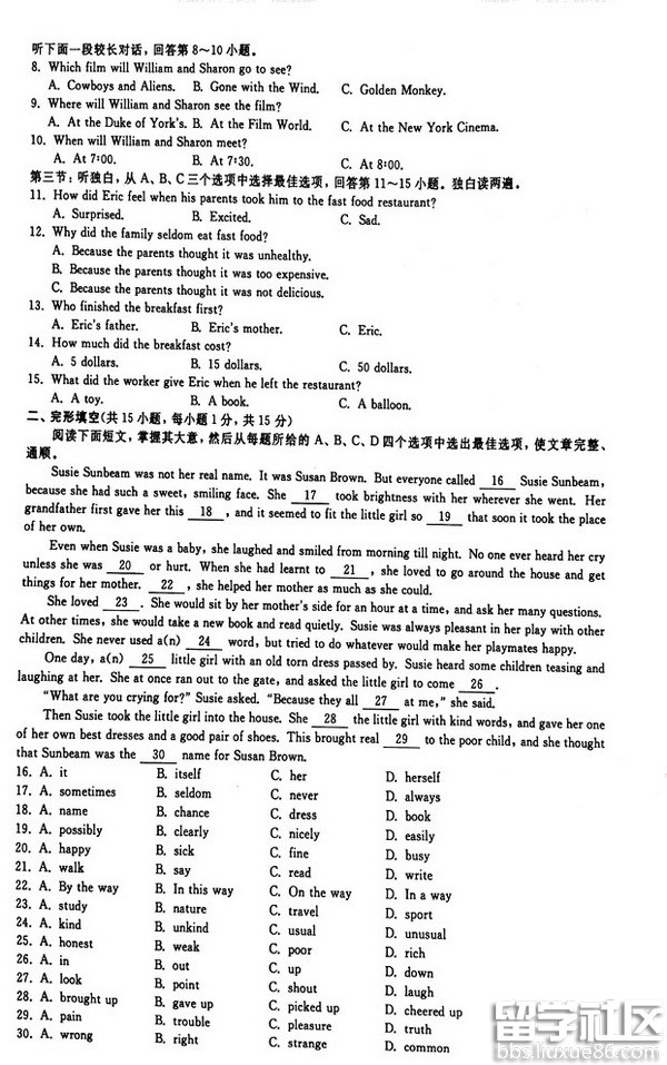 出国留学网专题频道2016衢州中考英语真题栏目,提供与2016衢州中考英语真题相关的所有资讯,希望我们所做的能让您感到满意!
