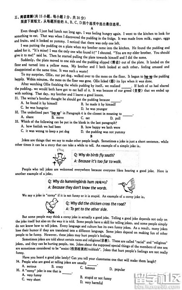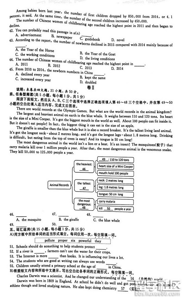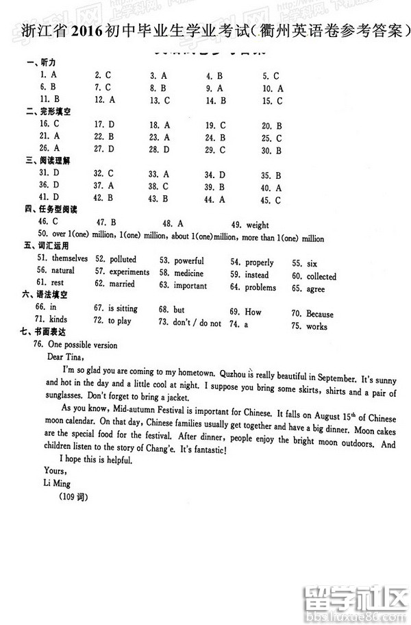 信心百倍,斗志昂扬,破釜沉舟,铸我辉煌。出国留学网中考频道第一时间为您公布2016衢州中考英语真题及答案,希望对您有所帮助,欢迎您访问出国留学网查看更多中考资讯,了解最新信息请按CTRL F5刷新页面。更多衢州中考分数线、衢州中考成绩查询、衢州中考志愿填报、衢州中考录取查询信息等信息请关注我们网站的更新!