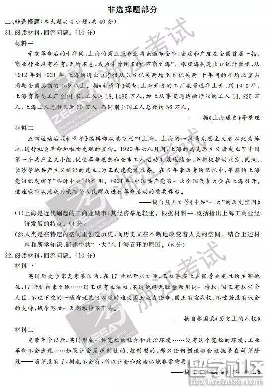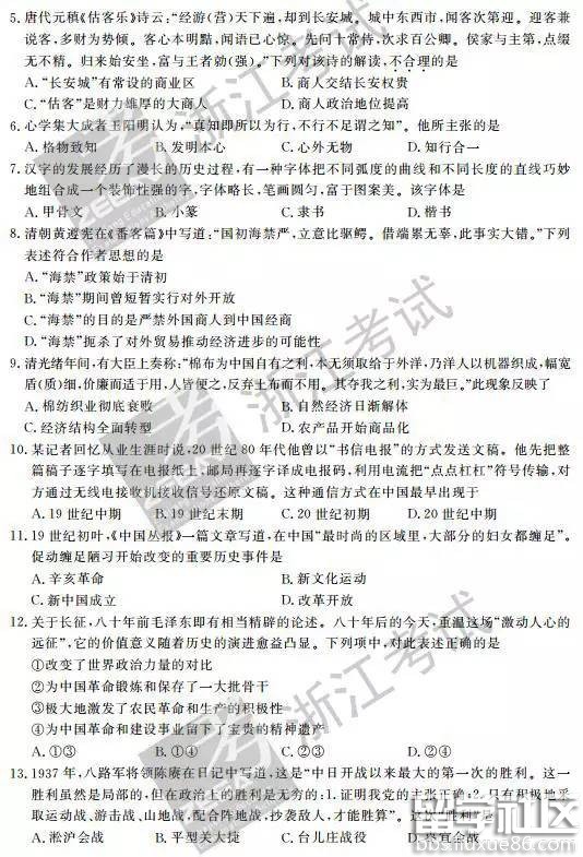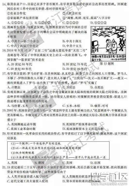 2016年10月浙江新高考学考选考历史试题及答案