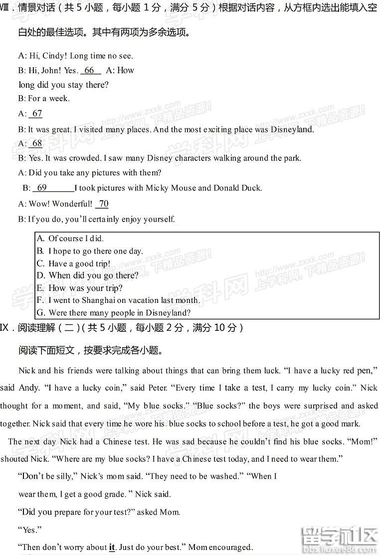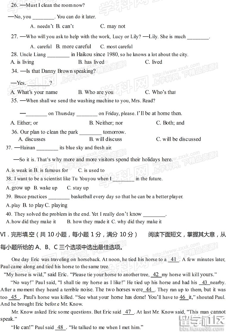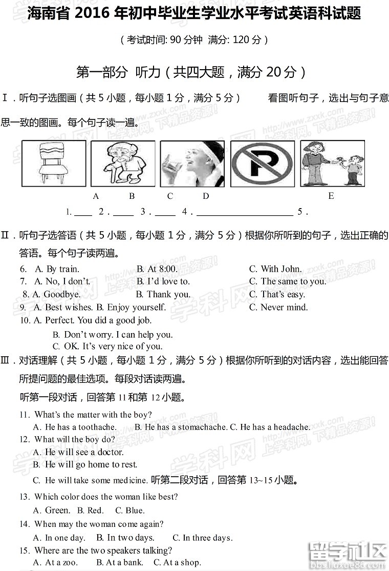 2016海南中考英语试题及答案