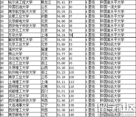 2016最新中国理工类大学排名