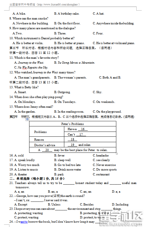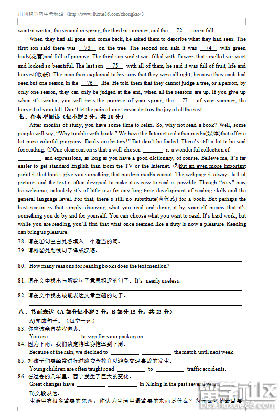 出国留学网专题频道2016西宁中考英语栏目,提供与2016西宁中考英语相关的所有资讯,希望我们所做的能让您感到满意!