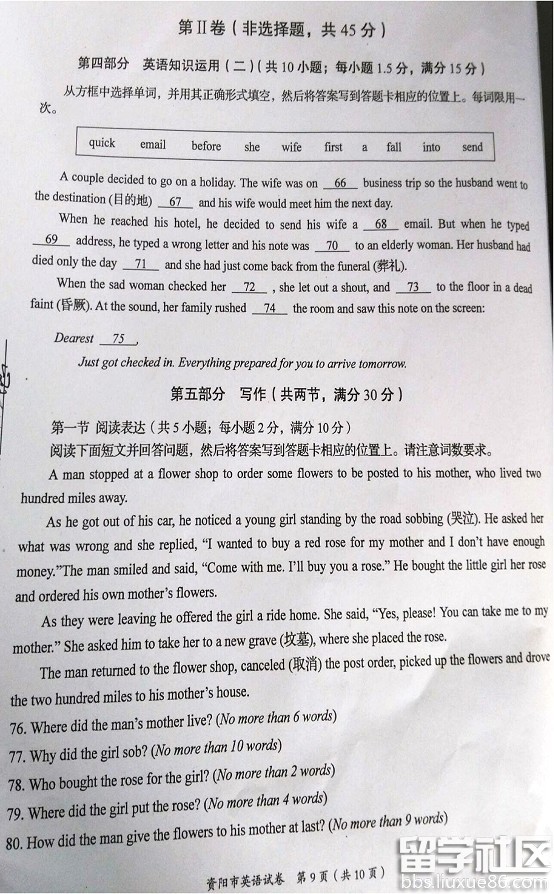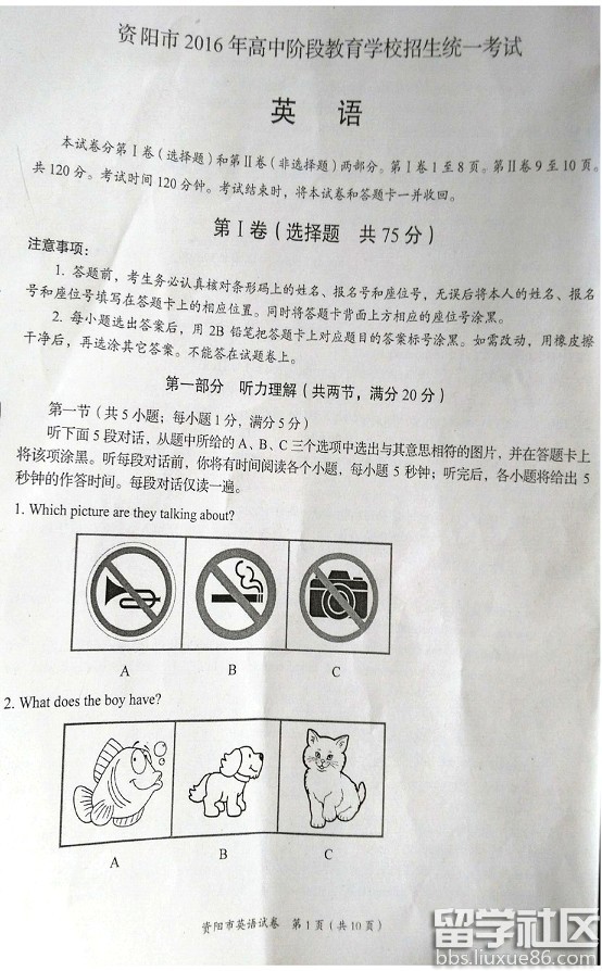 以下是出国留学网小编为大家带来的四川资阳2016中考英语试题,详细内容如下,希望能对大家有所帮助!预祝各位考生都能取得好的成绩!