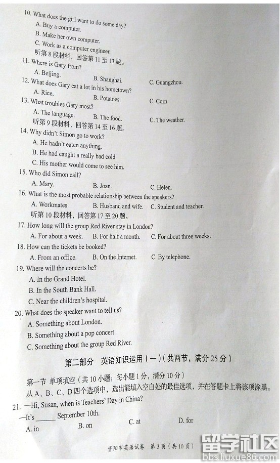 资阳中考英语听力答题技巧