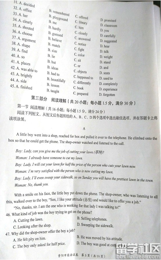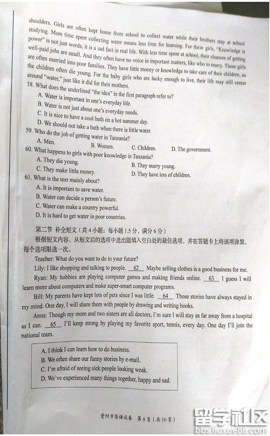 成功的人想办法,失败的人找借口,这就是成功者与失败者之间的最大区别。不要最后一秒钟,绝不放弃!出国留学网资阳中考英语试题及答案频道的小编会及时为广大考生提供2016年资阳中考英语试题及答案,有需要的考生可以在考题公布后刷新本页面(按ctrl F5),希望对大家有所帮助。