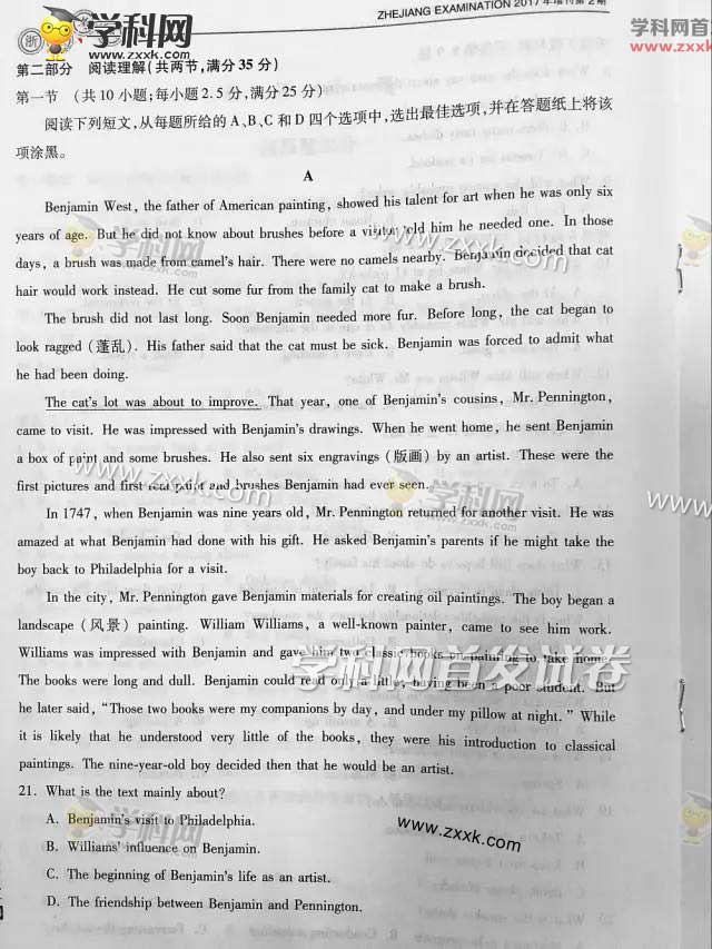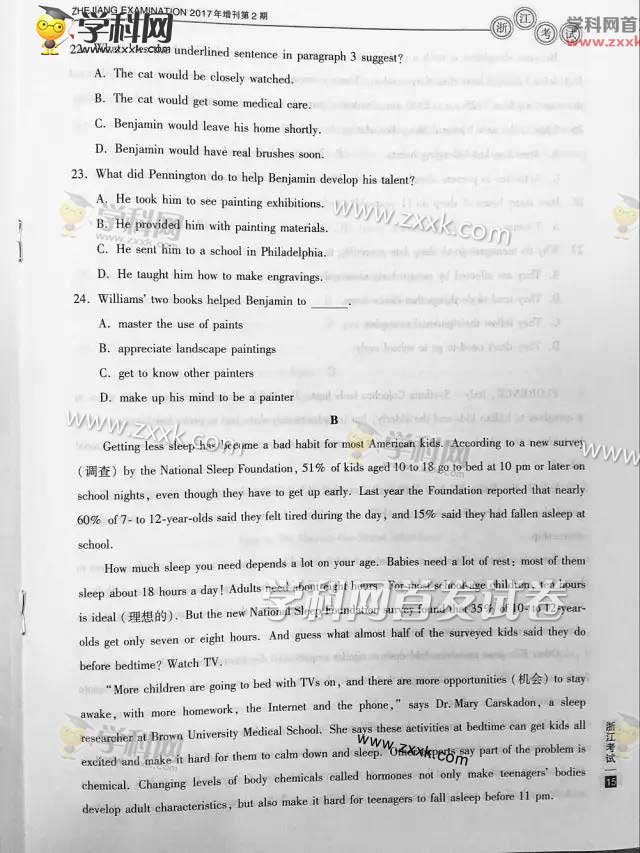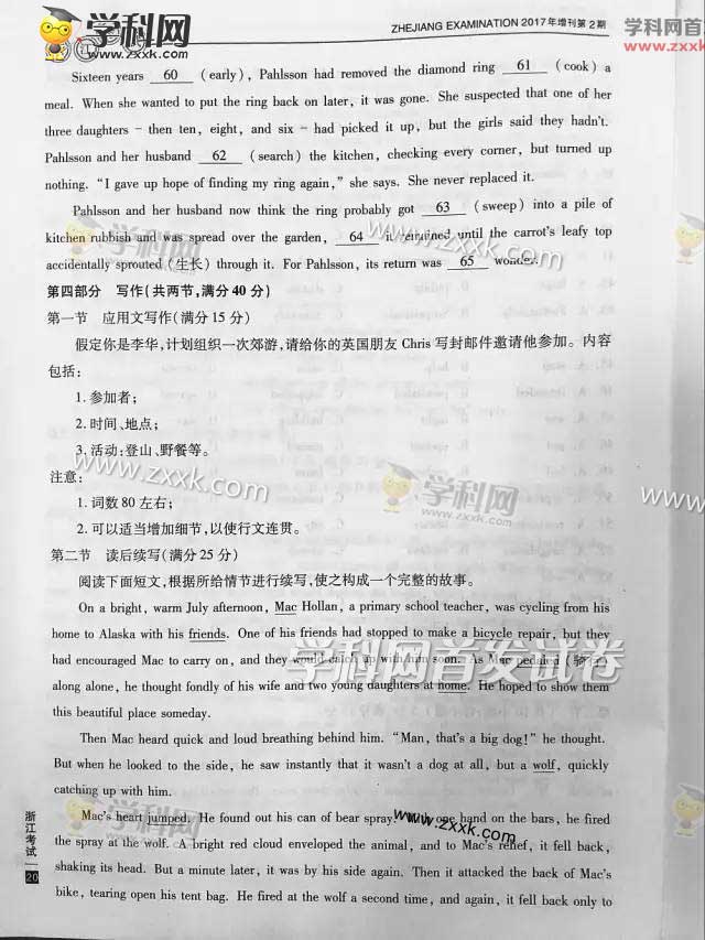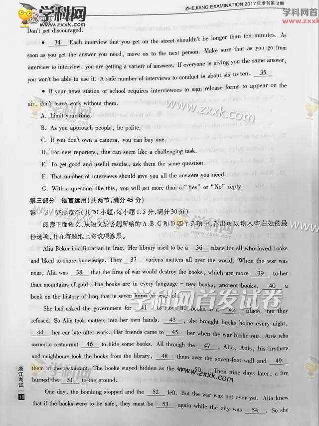 2017年浙江高考英语真题(含答案)在最后一页