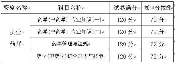 执业药师(药学、中药学)资格考试各科目合格标准均为72分(各科目试卷满分均为120分)。