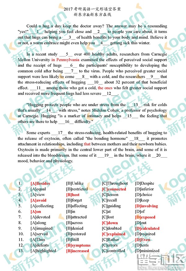 2017年考研已经圆满结束!出国留学考研网在考后第一时间为大家提供2017考研英语一答案,更多考研资讯请关注我们网站的更新!
