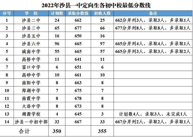 2022年三明市沙县区高中招生录取分数线公布,具体如下: