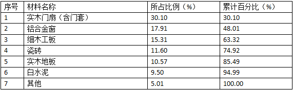 各种装饰装修材料占该批材料价款的累计百分比一览表序号材料名称所占比例(%)累计百分比(%)