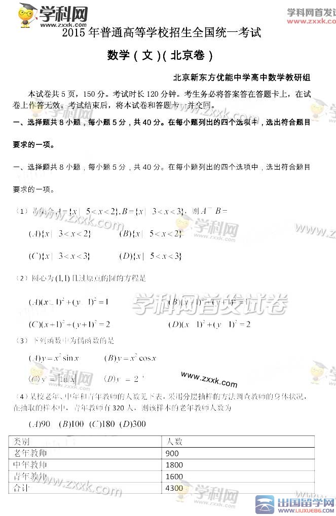 出国留学网为您提供最权威的高考真题及答案信息,经过了连日来的忙碌,现在由出国留学网高考频道为您公布2015安徽高考理数真题及答案,供您参考,希望对您有帮助,欢迎您访问出国留学网浏览更多高考真题信息,您还可以按按CTRL+D收藏本站。