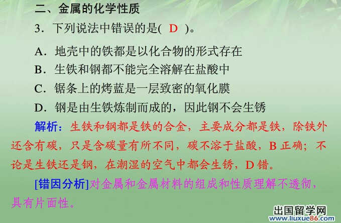 整理纠错本绝对是短期内攻克难题的最高效的方法,只有从错题中去总结自己所犯得错误,找到自己的问题在哪里,只有从错题中去总结自己所犯得错误,找到自己的问题在哪里,才能做到在复习的时候有的放矢。更多有关2014中考化学的信息可登录出国留学网化学频道,欢迎收藏本站(CTRL+D即可收藏)!