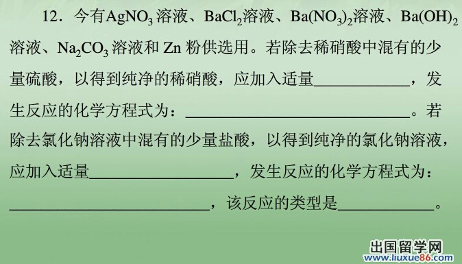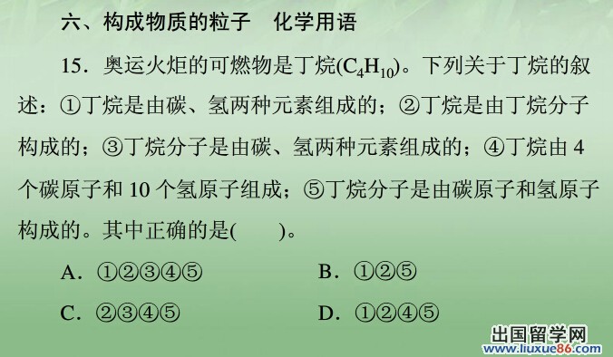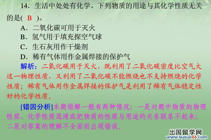 同学们要“常复习,多记忆”。课后应及时复习,认真做好作业,这是学好化学的重要环节。复习可采用课后复习、周后复习、单元复习、章节复习、综合复习等。复习的方法有复述、默写、做联系等。只有通过多次复习才能牢固地掌握知识。更多有关2014中考化学的信息可登录出国留学网化学频道,欢迎收藏本站(CTRL+D即可收藏)!