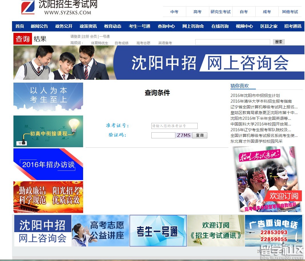 沈阳中考考场查询系统:http://www.syzsks.com/static/lm_cxzx_cxjg.html?param=kccx_fyht