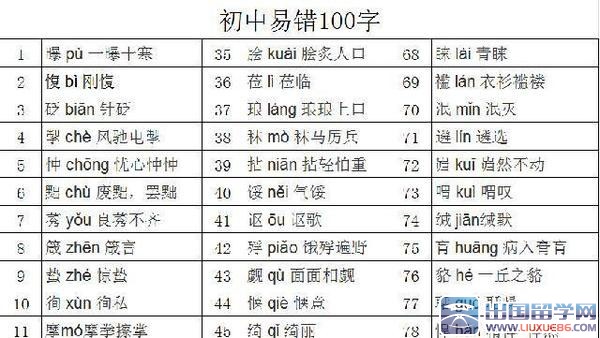 出国留学网中考网为大家提供中考语文易错字100个汇总,更多中考资讯请关注我们网站的更新!