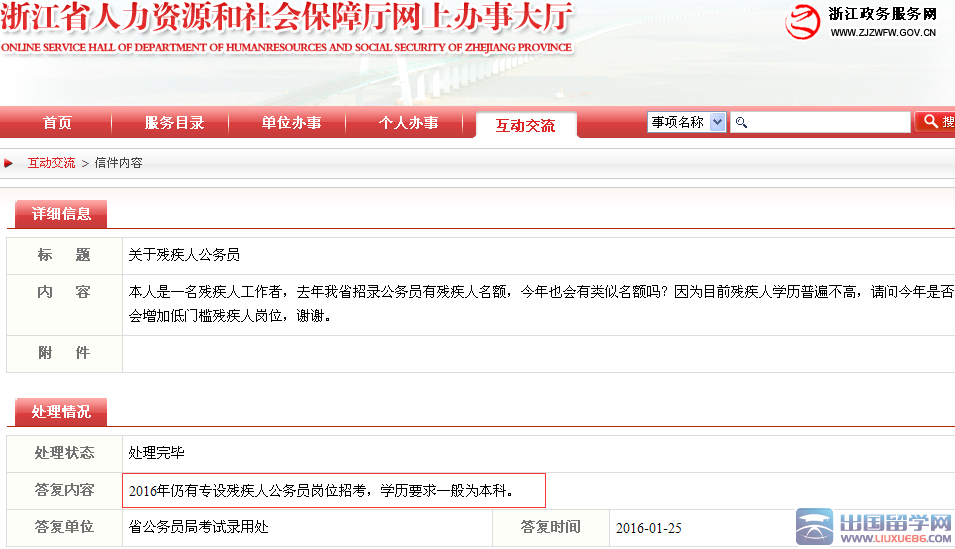 (4)2016年浙江公务员考试仍设残疾人岗位 学历一般要求本科。