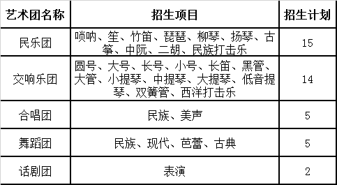 (2)合唱团、舞蹈团:考生要求从事专业训练5年以上,具有良好的训练基础,形象好,女生1.60米以上,男生1.72米以上;具有一定的专业水准,一般要求曾在市级及以上比赛中获过奖,或参加过市级及以上大型演出者,能担当领舞、领唱之职。