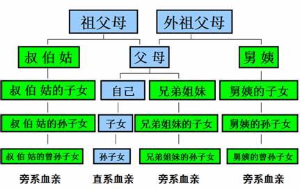 三代以内旁系血亲:一般是指没有直接血亲关系,但在血缘上和自己同出一源的亲属。如下图所示