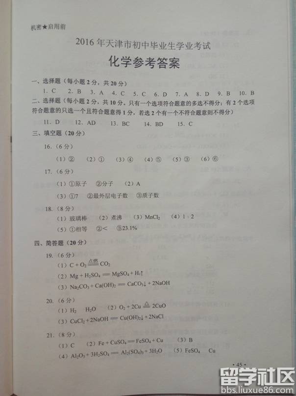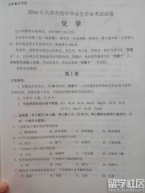 为者常成,行者常至。出国留学网中考频道第一时间为您公布天津中考化学试题及答案(2017),希望对您有所帮助,欢迎您访问出国留学网浏览更多中考资讯,了解最新信息请按CTRL F5刷新页面。更多天津中考分数线、天津中考成绩查询、天津中考志愿填报、天津中考录取查询信息等信息请关注我们网站的更新!