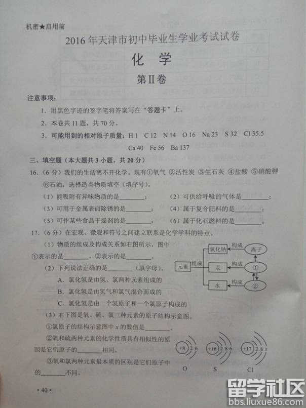 以下是出国留学网小编为大家带来的天津2016中考化学试题及答案,详细内容如下,希望能对大家有所帮助!预祝各位考生都能取得好的成绩!