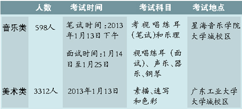 昨日从市教育部门获悉,2013年广东省普通高考艺术类(美术、音乐)术科统考笔试定于2013年1月13日举行。