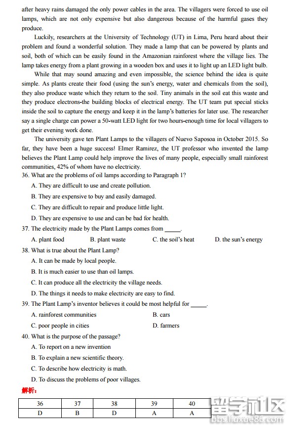 做阅读理解题时,可先浏览问题,带着问题通读全文;也可先通读全文再看问题。文章至少读两遍,正确对待文章中的生词和难句,不要慌,要学会根据上下文判断其意。对于文章中一些较复杂的长句,只要抓住重点和关键,问题就明朗了。做完题后,要检查一遍,对文中关键词语及重要语句一定要细读、读透。有时题目难度大,仅从字面理解还不够,要根据上下文和中心思想进行归纳和推断。